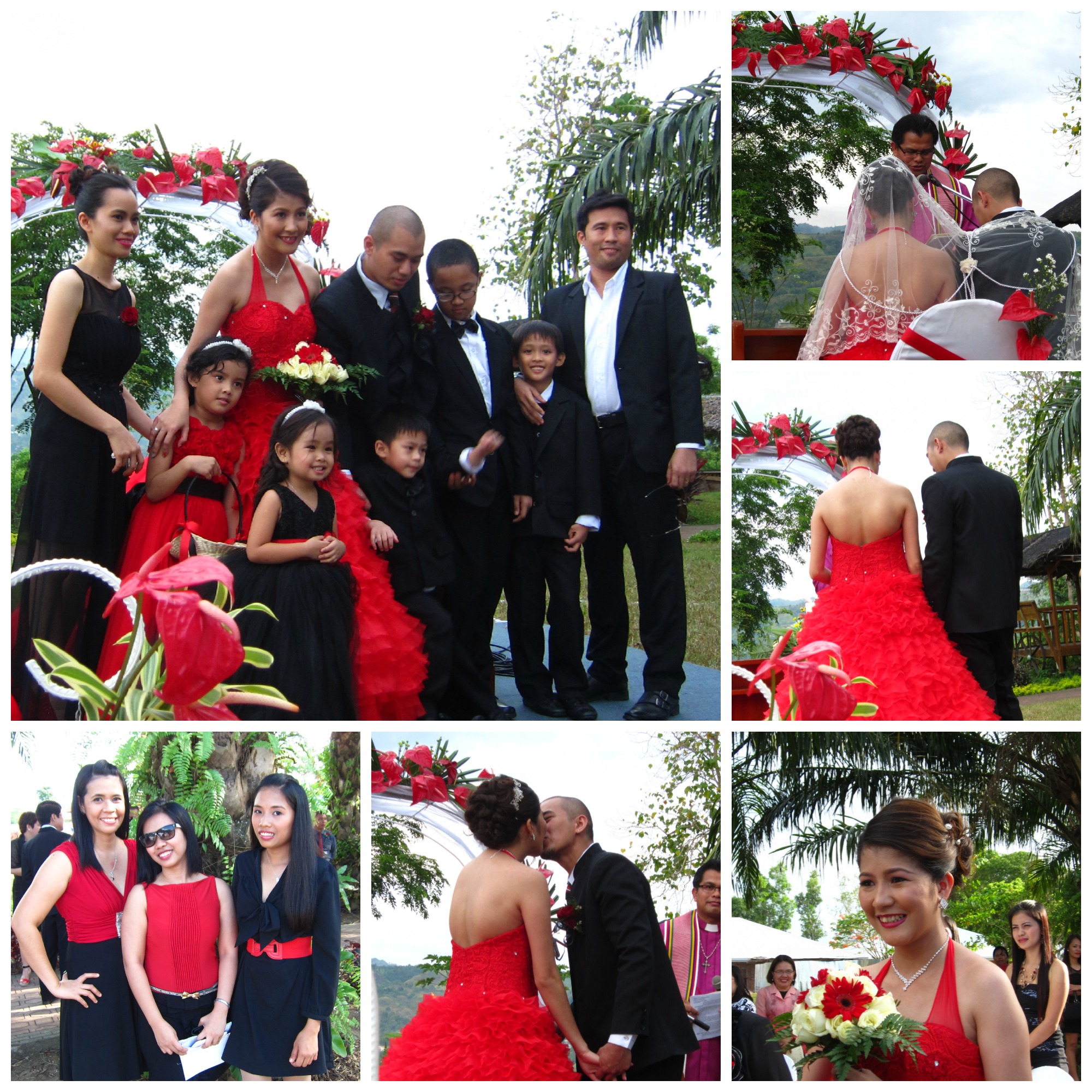 I love the black-and-red inspired garden wedding. The bride was really extra beautiful in her long red dress and the groom was equally handsome in his black suit. Their little boy Zeke looked like a real little gentleman too. So cute!!!
